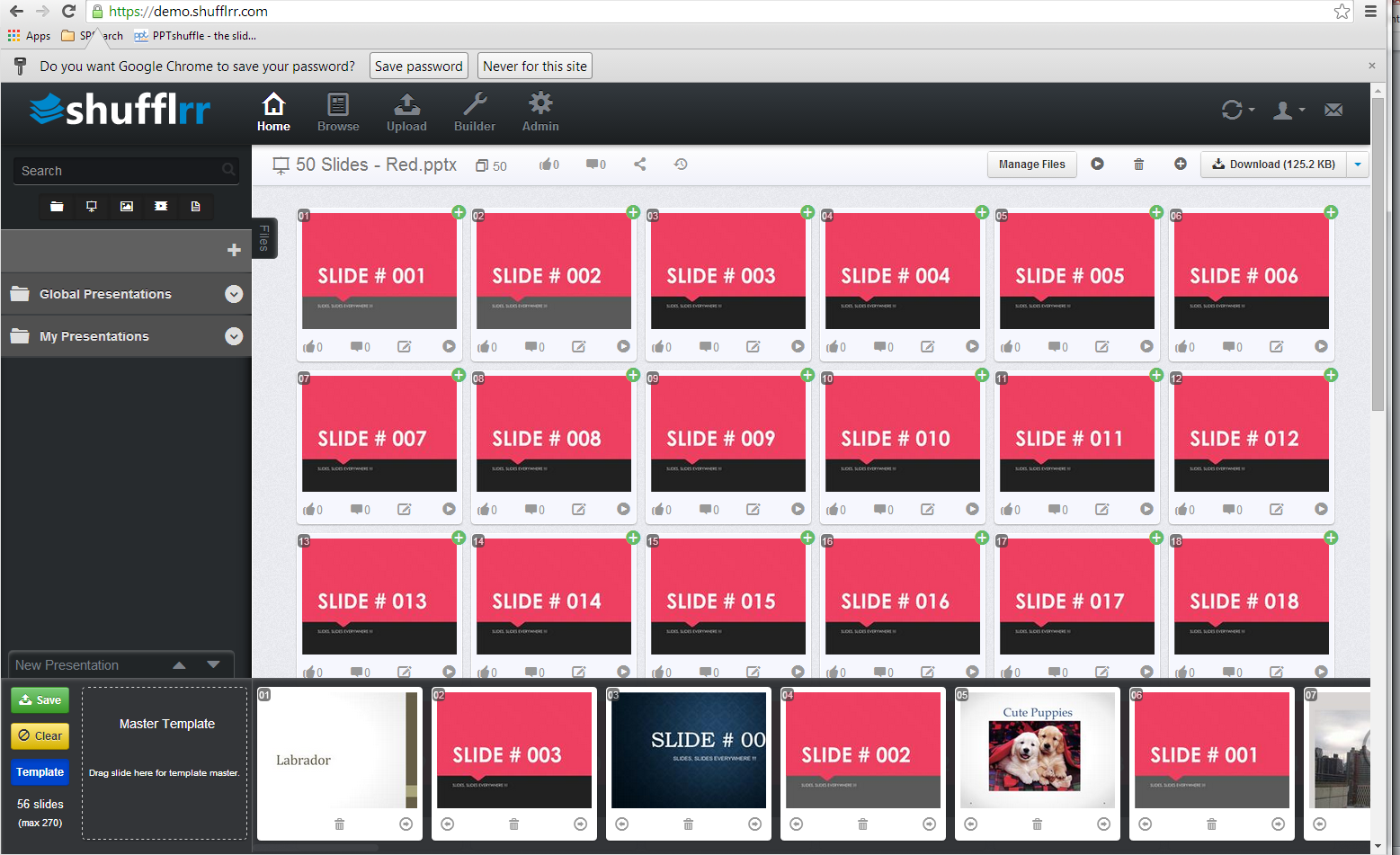 Shufflrr distributes updated slides, so you don’t have to worry about outdated, wrong slides creeping back into presentations. Anyone who has write permissions to a folder can update/overwrite a presentation, and then distribute the updated content to end-users personal presentations (i.e .child presentations that were created using slides from the overwritten presentation). Updates can be forced or you can let the end-user decide whether or not he wants the updated content. And you get a side by side, slide by slide, comparison and recap of the old version versus the new version. You have control over the updated content throughout the process.